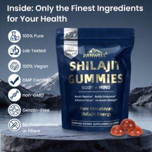 PANWELL Shilajit Gummies with Ashwagandha, Seamoss & Turmeric | Zero Sugar Energy, Cortisol Balance, Sleep, Immune & Overall Health Support – for Men & Women 90 Gummies